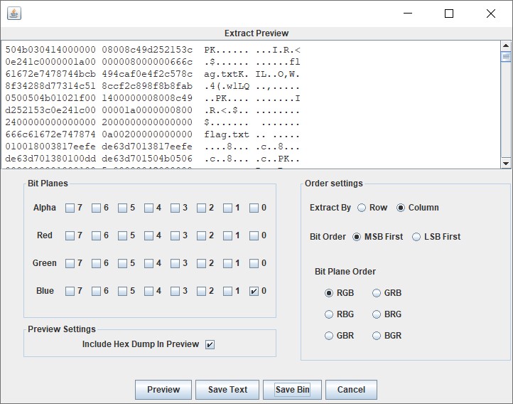 对图片使用 StegSolve 进行 B 通道下的 MSB 数据提取可以得到一个压缩包。