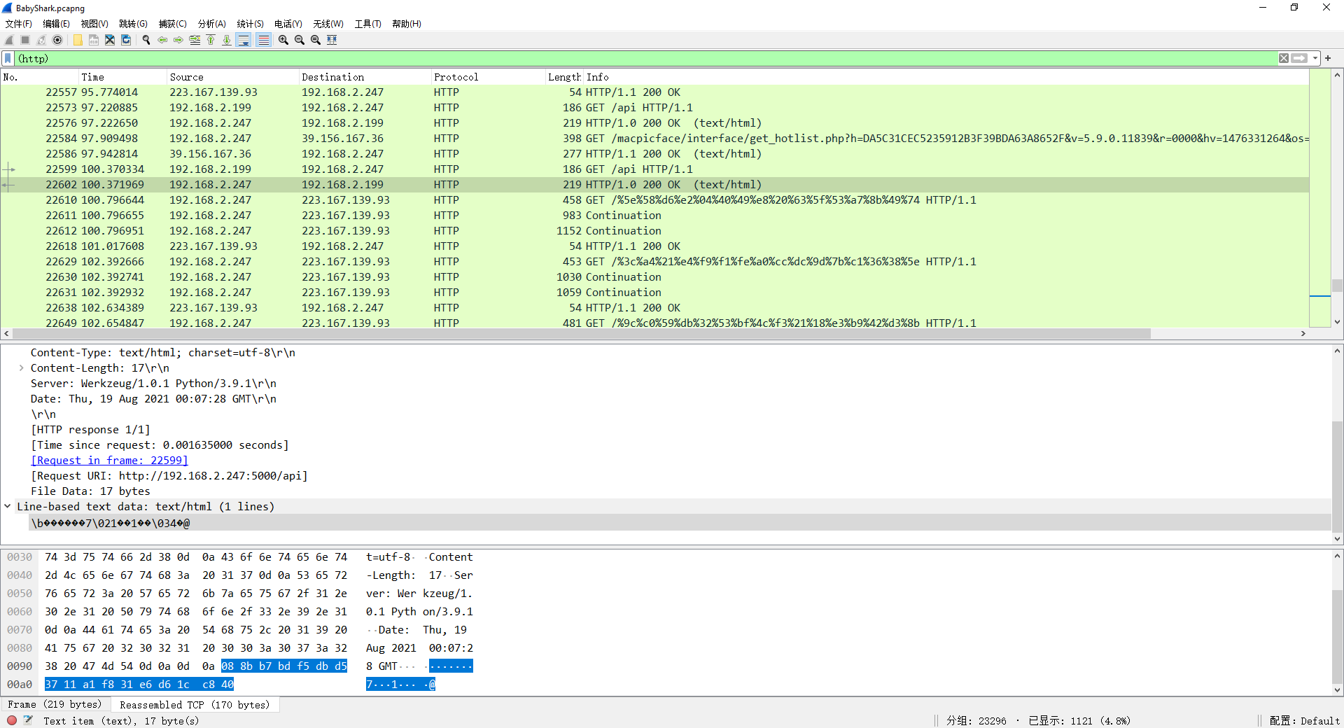 可以发现响应的是一段二进制数据,这里需要脑洞一下,PBResp 实际上就是 ProtoBufResponse 的缩略写法。将如下响应数据使用 ProtoBuf 解码。