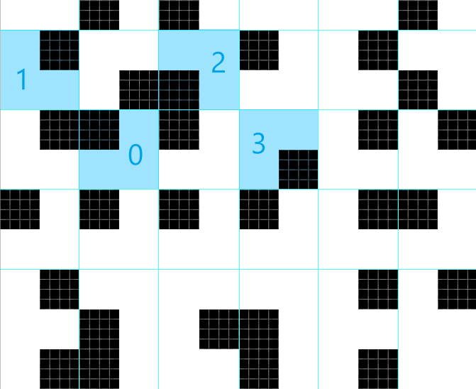 data = [image.getpixel((x, y)), image.getpixel((x + 4, y)), image.getpixel((x, y + 4)), image.getpixel((x + 4, y + 4))]