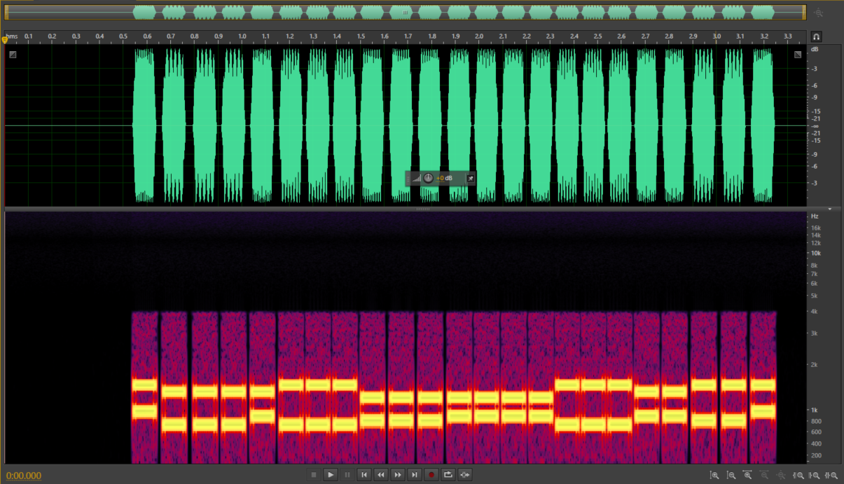 在附件中解压所得的 key.wav 的末尾可听到一段 DTMF,将其提取出来后波形和频率如下图。