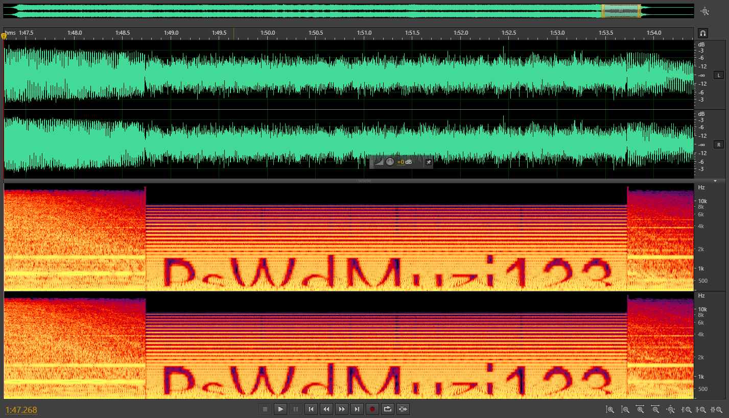 修正拓展名为 mp3 后使用 Audition 可以发现如下信息。
