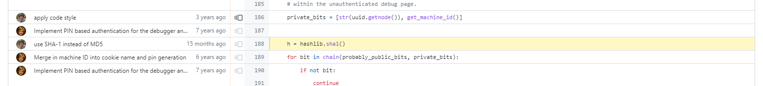 从 werkzeug 项目的记录中可以发现 PIN 的生成算法有过细微的更改。