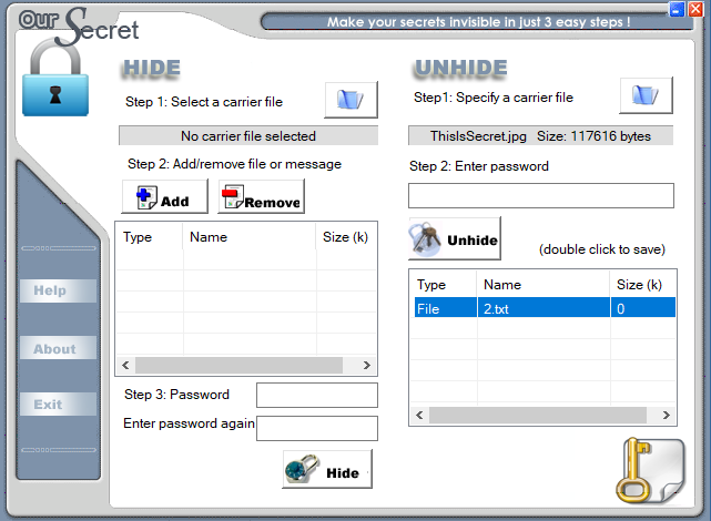 将图片下载下来,使用 OurSecret 解密可得一个文件。