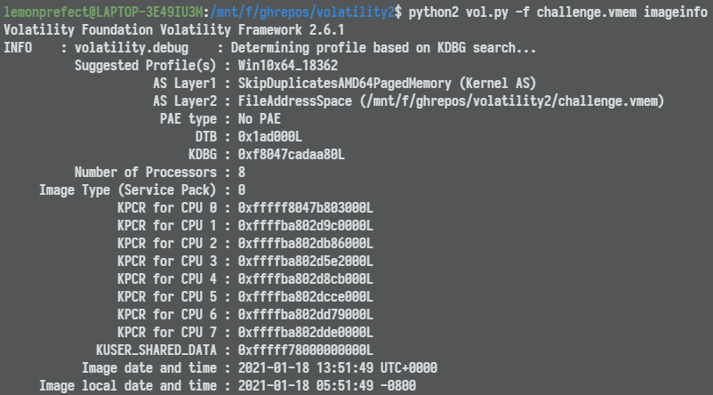 python2 vol.py -f challenge.vmem --profile=Win10x64_18362 memdump -p 6484 -D ./